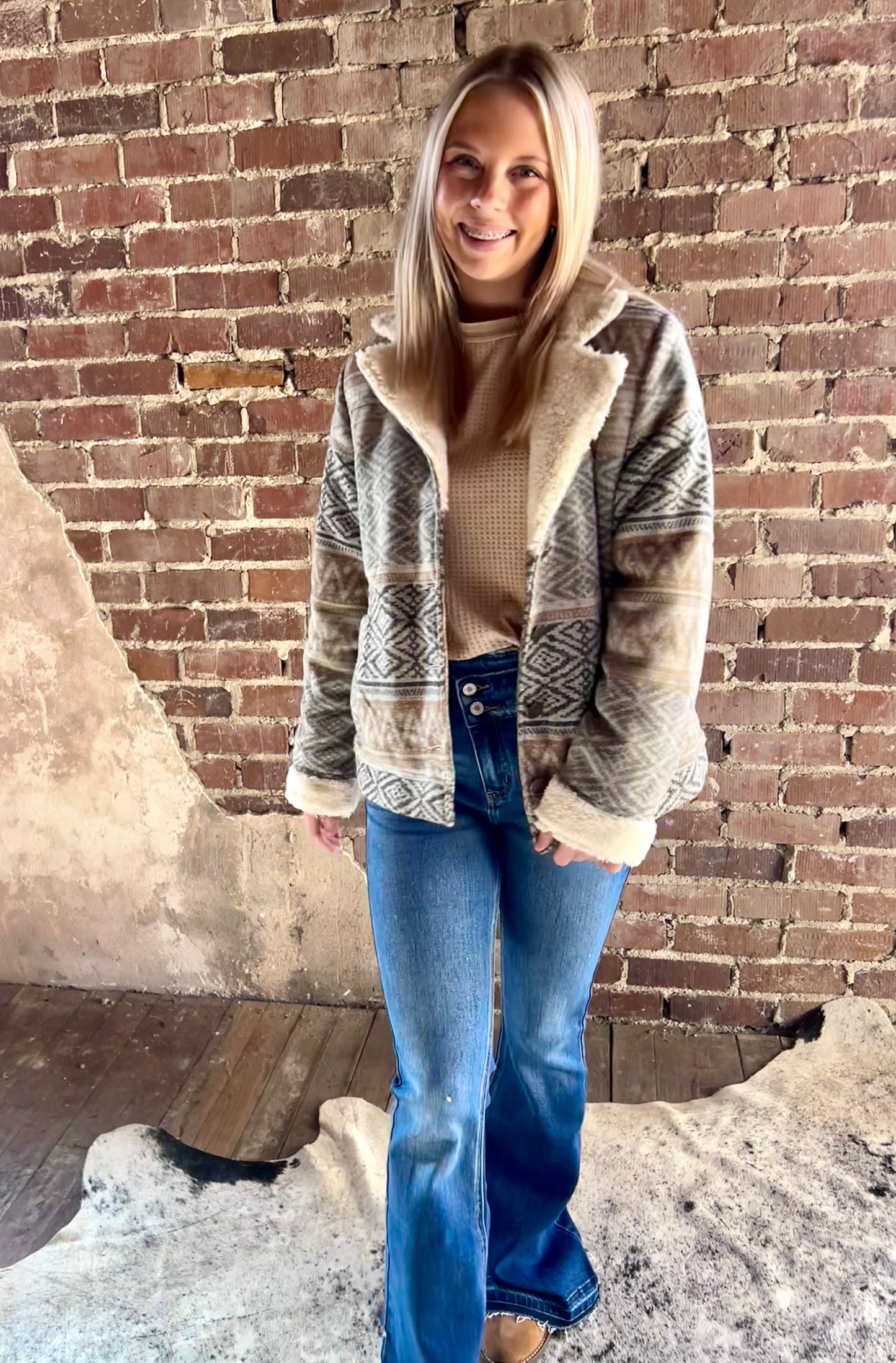 The new Gemma Jacket is here to keep you warm all season long with berber lining and is made with a beautiful yet simple grey pattern.