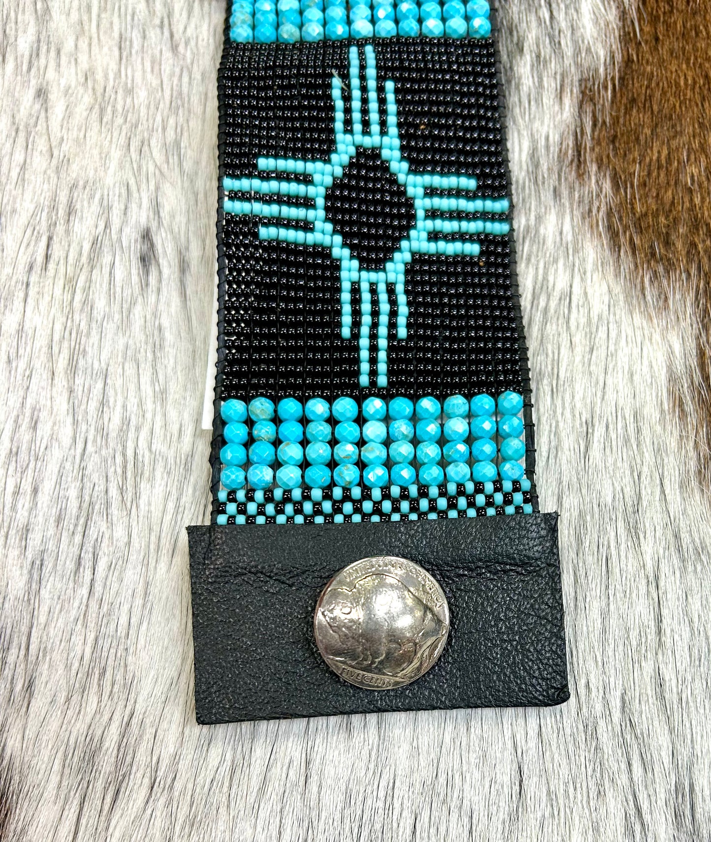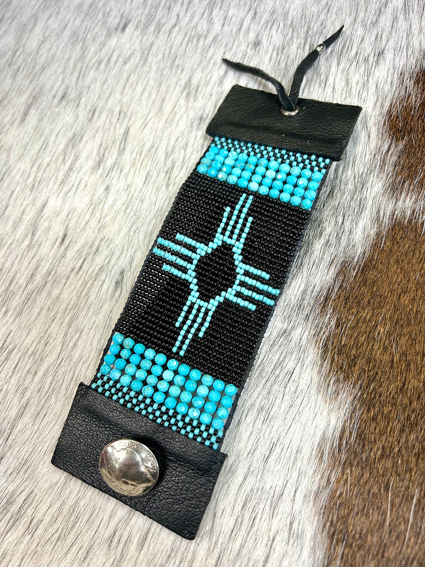 Turquoise and Leather Cuff